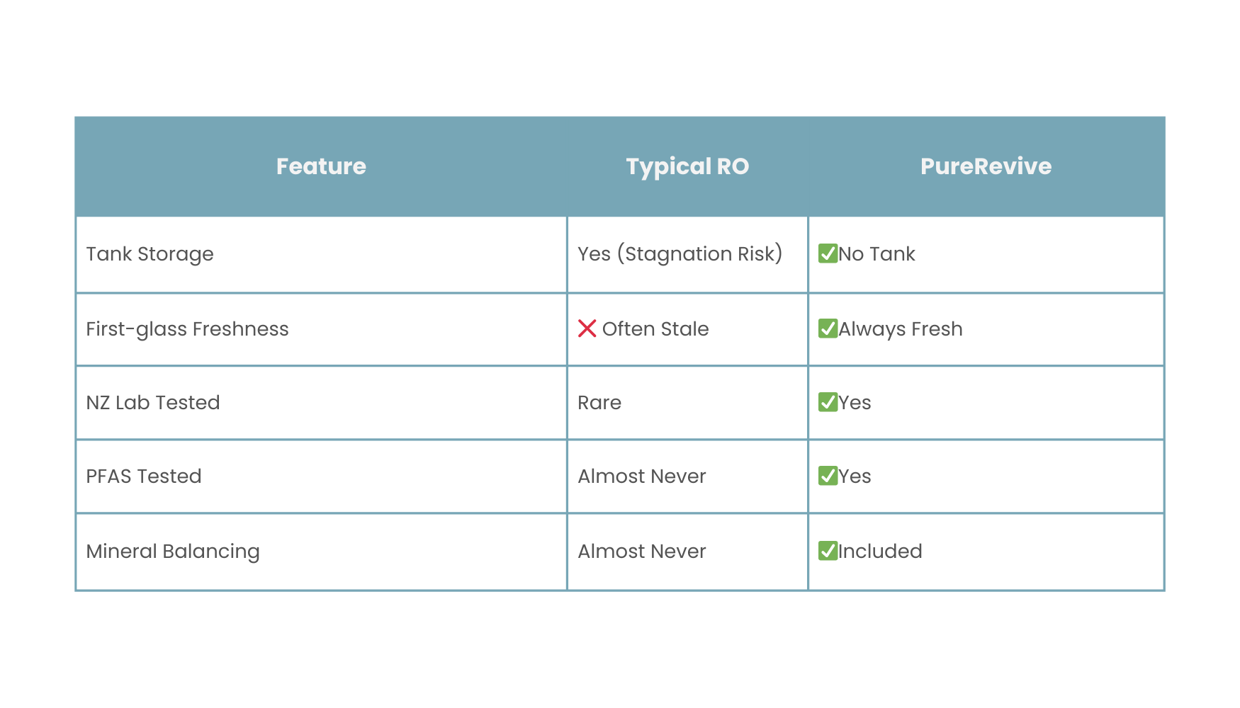 - Real-Time Fresh Water: Unlike many systems, which may produce water exposed to stagnant plumbing, PureRevive’s innovative design ensures every drop is freshly filtered from the first pour.